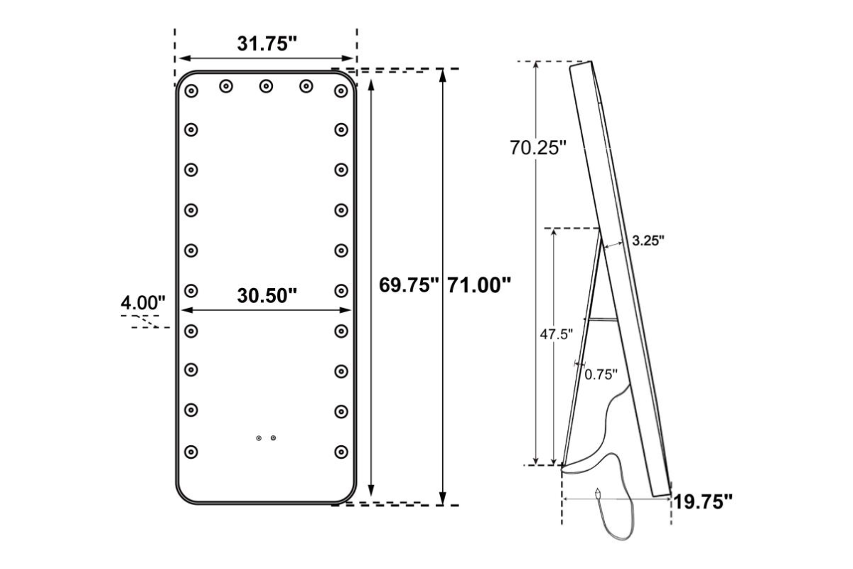 Includes: One (1) LED standing mirror with Bluetooth Speaker