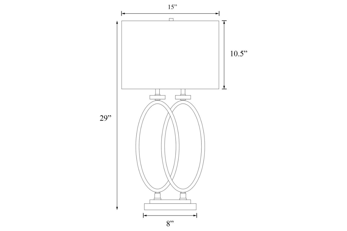 This modern table lamp features a pair of brushed nickel oval rings that float within a crystal-clear base, bringing sculptural balance to any space. Its rectangular fabric shade adds contrast and definition, while the sleek silhouette complements a wide range of contemporary or transitional interiors. Designed for both style and function, this striking accent lamp elevates your living room, bedroom, or home office with a polished presence