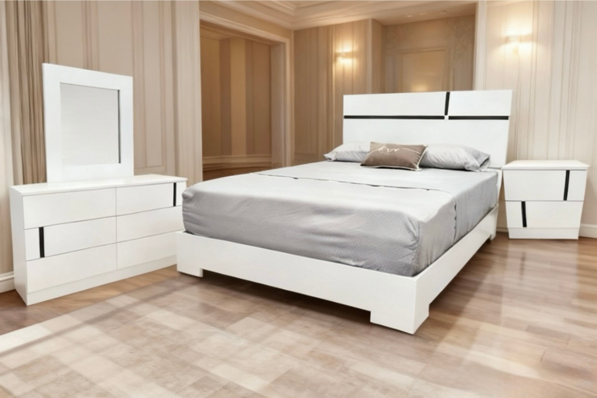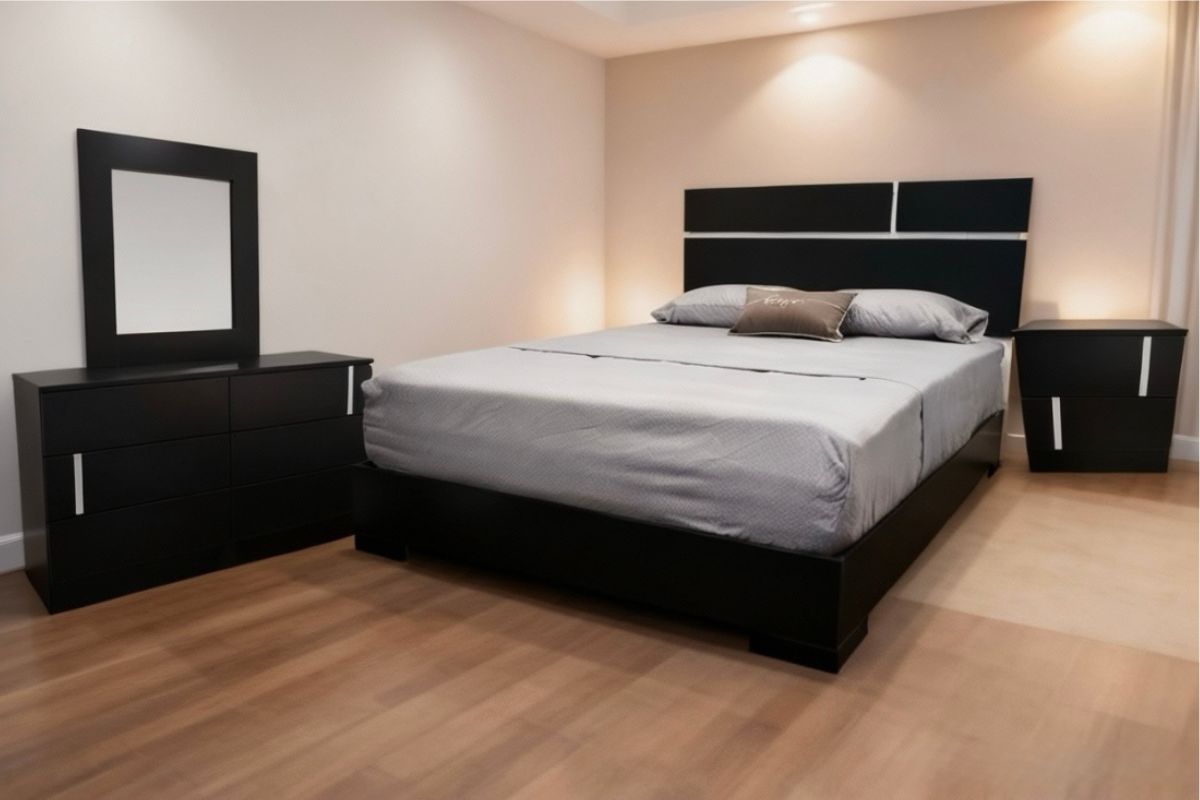 - Includes: 1-Bed Frame, 1-Dresser, 1-Mirror, 2 Nightstands