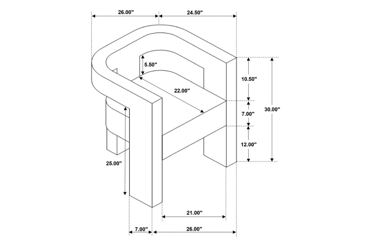 Enveloped entirely in the embrace of plush bouclé, this chair redefines the art of relaxation with its all-fabric design. The seamless transition from the cushioned seat to the curved arms, all robed in the same soft fabric, creates a cocoon of comfort. This chair's silhouette is a gentle wave of tranquility, its form an ode to the curves found in nature. The uninterrupted bouclé upholstery invites a serene tactile experience, transforming the chair into a modern sanctuary. It's a haven of softness, a singular statement of elegance and ease.