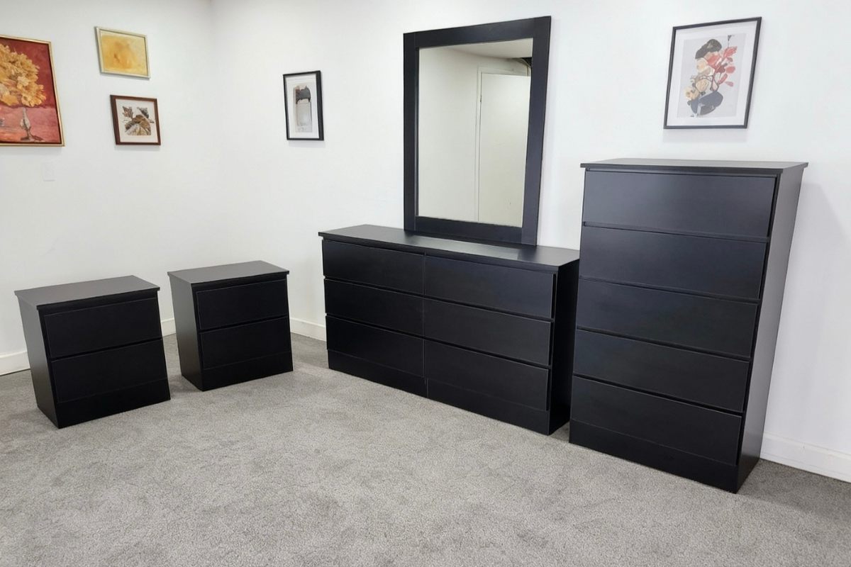 6-Drawer Dresser, Mirror, 5-Drawer Chest and 2 Nightstands