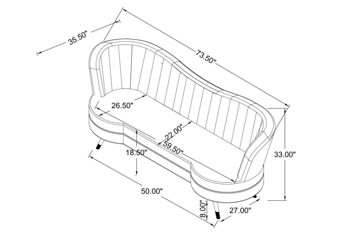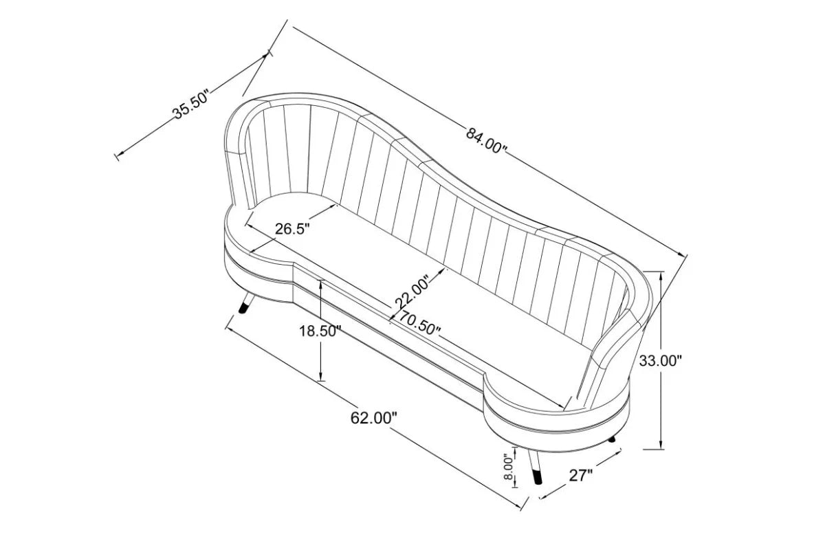 Inspired by a glam version of mid-century artistry, this three-piece sofa set offers all that’s needed to begin a romantic living space motif. Give a living room or family room its best design life with this set built with frames fully encased in solid wood and covered in decadent gray velvet. Vertical channeling on back interiors highlights the iconic kidney shape of its sofa and loveseat and add dimensionality to an extra comfy accent chair. Set atop slender, tapered legs fashioned of gold finish stainless steel, each piece reflects the parlor look of upscale retro furnishings. Set includes one sofa, one loveseat, and one chair.