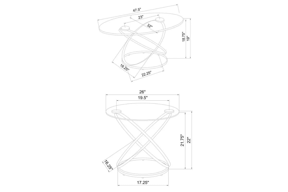 This striking coffee table set includes a cocktail table and two matching side tables, perfect for modern living spaces. Featuring clear tempered glass tops, these tables exude elegance and durability. The bases showcase polished chrome-finished metal in an intertwined ring design, adding a touch of contemporary flair. The open framework enhances visual lightness, making the set ideal for smaller spaces. Designed for style and functionality, this set is a versatile addition to any room.